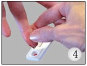 用棉球消毒指尖后,擰下一次性采血針保護(hù)圓帽,刺破皮膚表面,輕輕擠壓出血。 采血之前,可以充分揉搓手指促進(jìn)血液循環(huán);一般選擇左手的無(wú)名指;注意一支采血針只能一人使用,以免造成交叉感染。(圖3)
