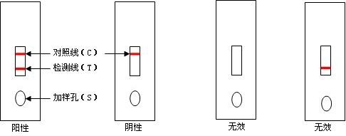 4. 失效:在觀察孔內(nèi),對照線區(qū)(C)和檢測線區(qū)(T)都不出現(xiàn)色線;或僅檢測線區(qū)(T)出現(xiàn)色線。